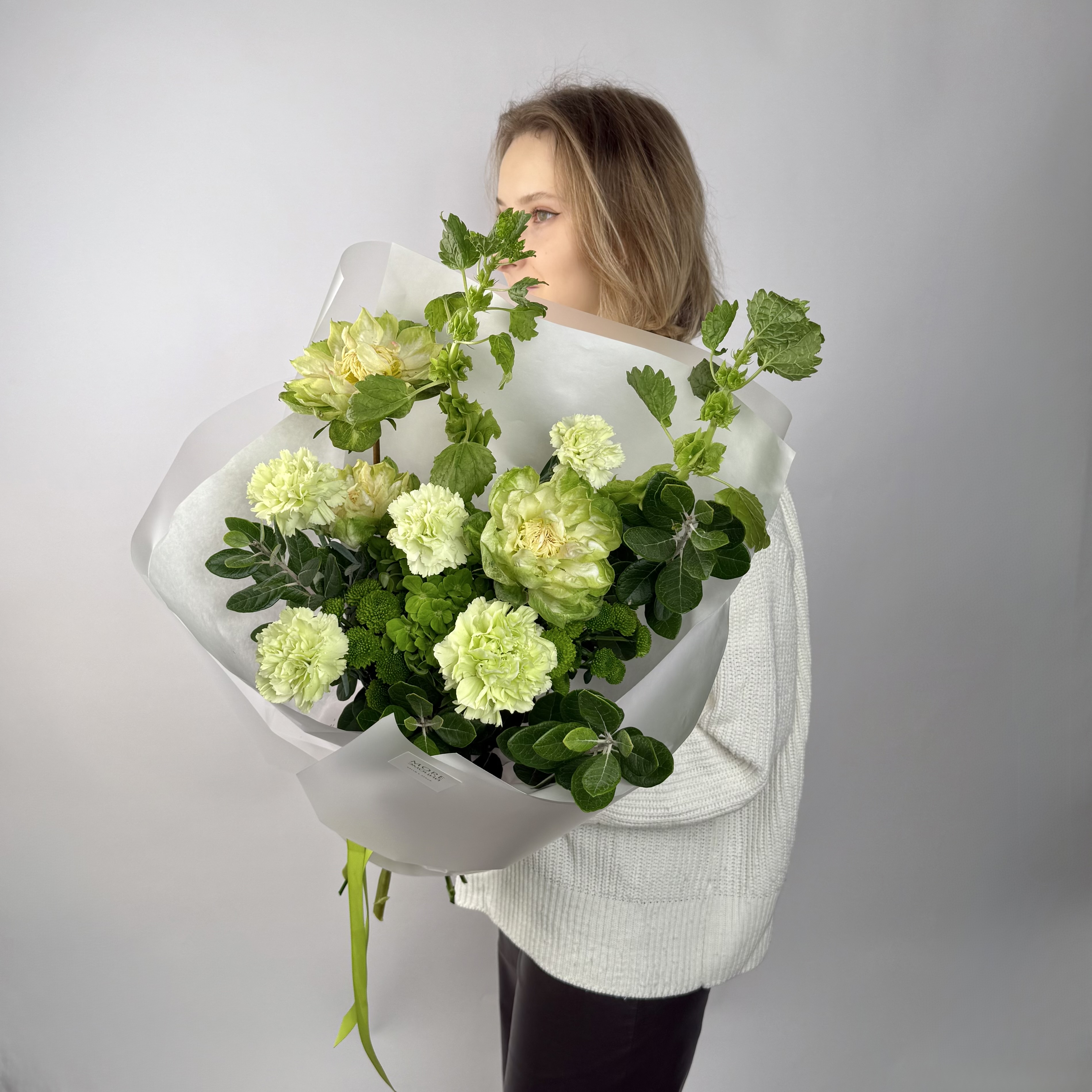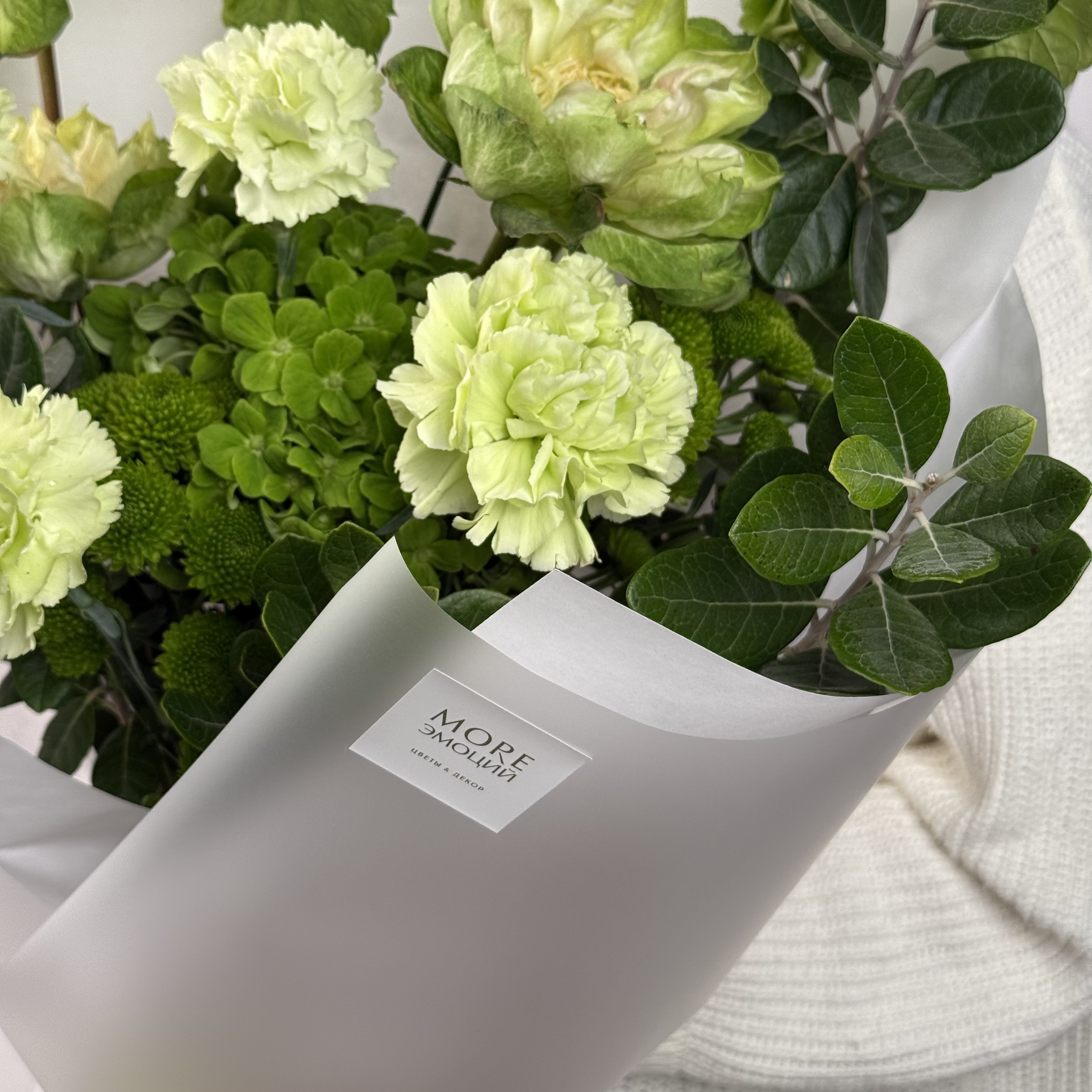 Сочетание природной естественности и утонченного стиля - букет Шепот леса строится на игре оттенков и фактур, создавая гармоничный образ с легким экзотическим акцентом.