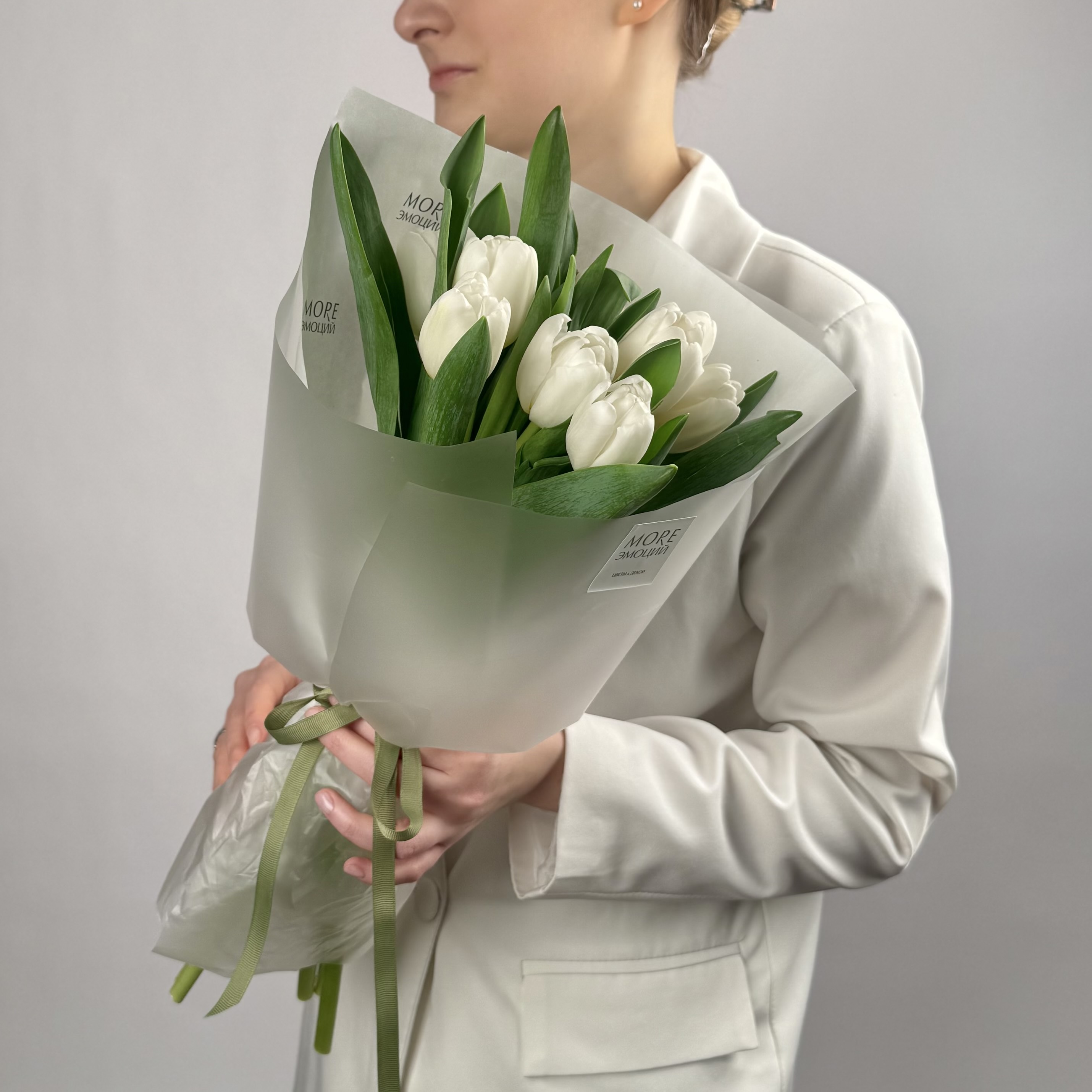 Монобукет из 9 классических белых тюльпанов