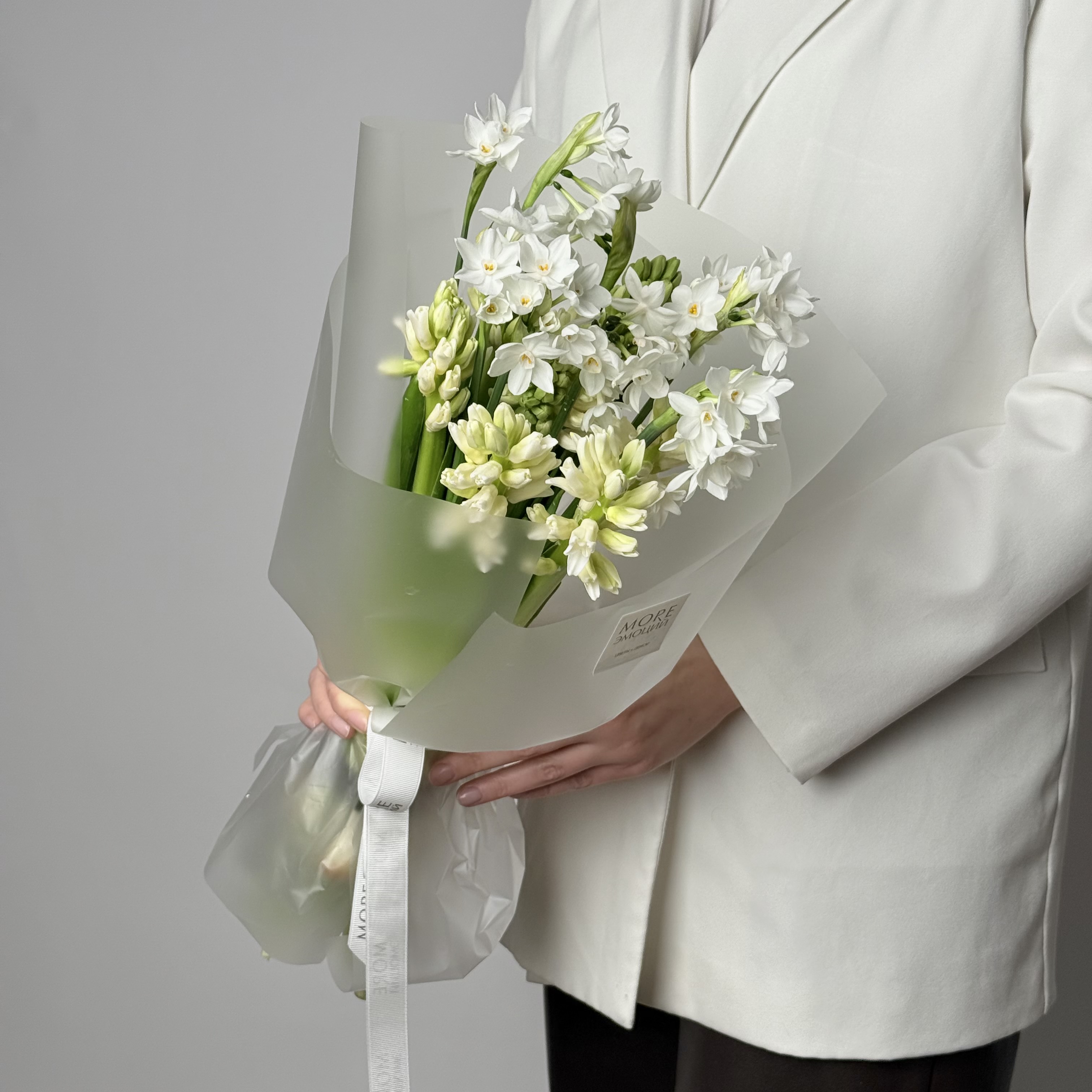Ароматный дуобукет из весенних гиацинтов и нарциссов