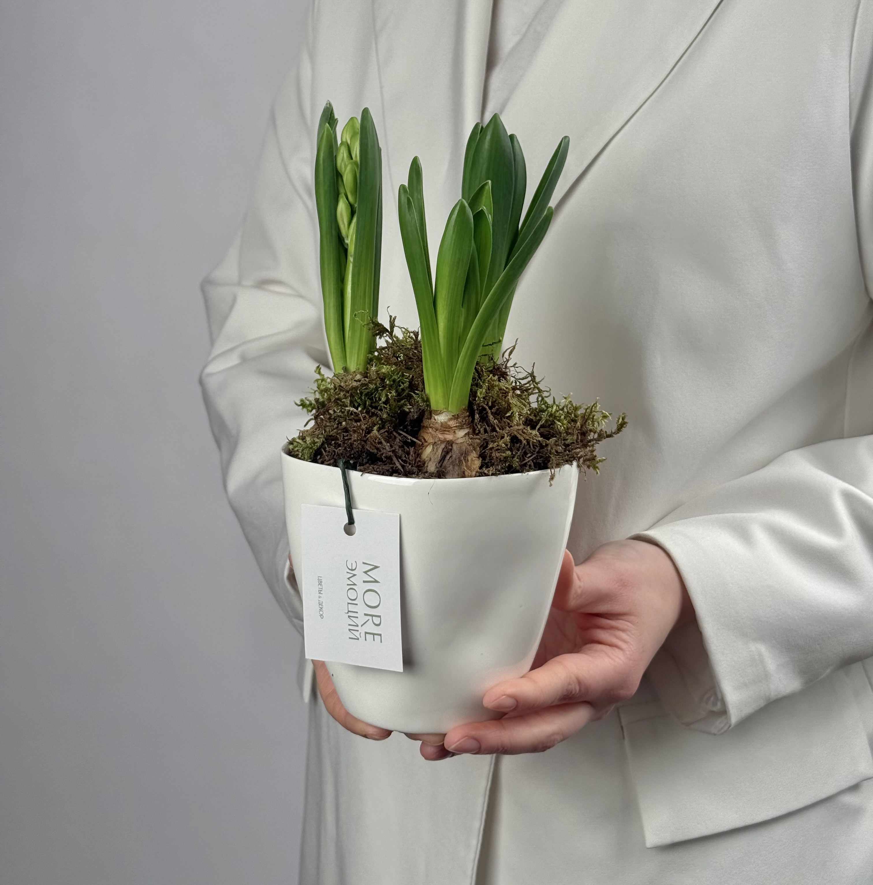Комплимент в фарфоровом стакане ручной работы с ароматными гиацинтами