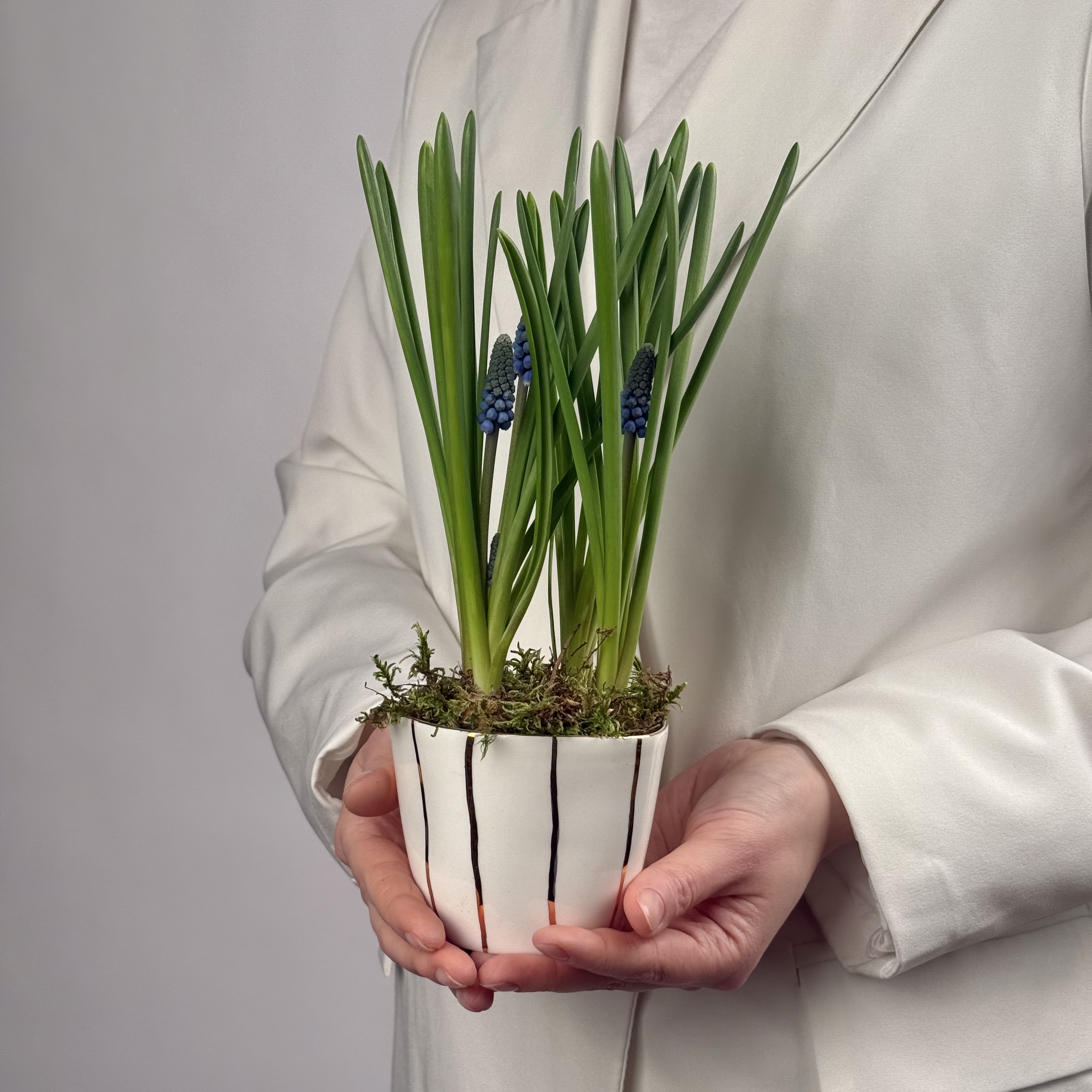 Весенний комплимент - небесные мускарики в фарфоровом стакане ручной работы