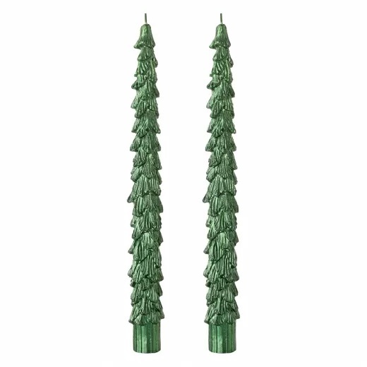 Набор из двух свечей из коллекции New Year Essential создаст волшебную атмосферу праздника. Высокие зеленые елочки идеально подходят для украшения праздничного стола, камина или подоконника.