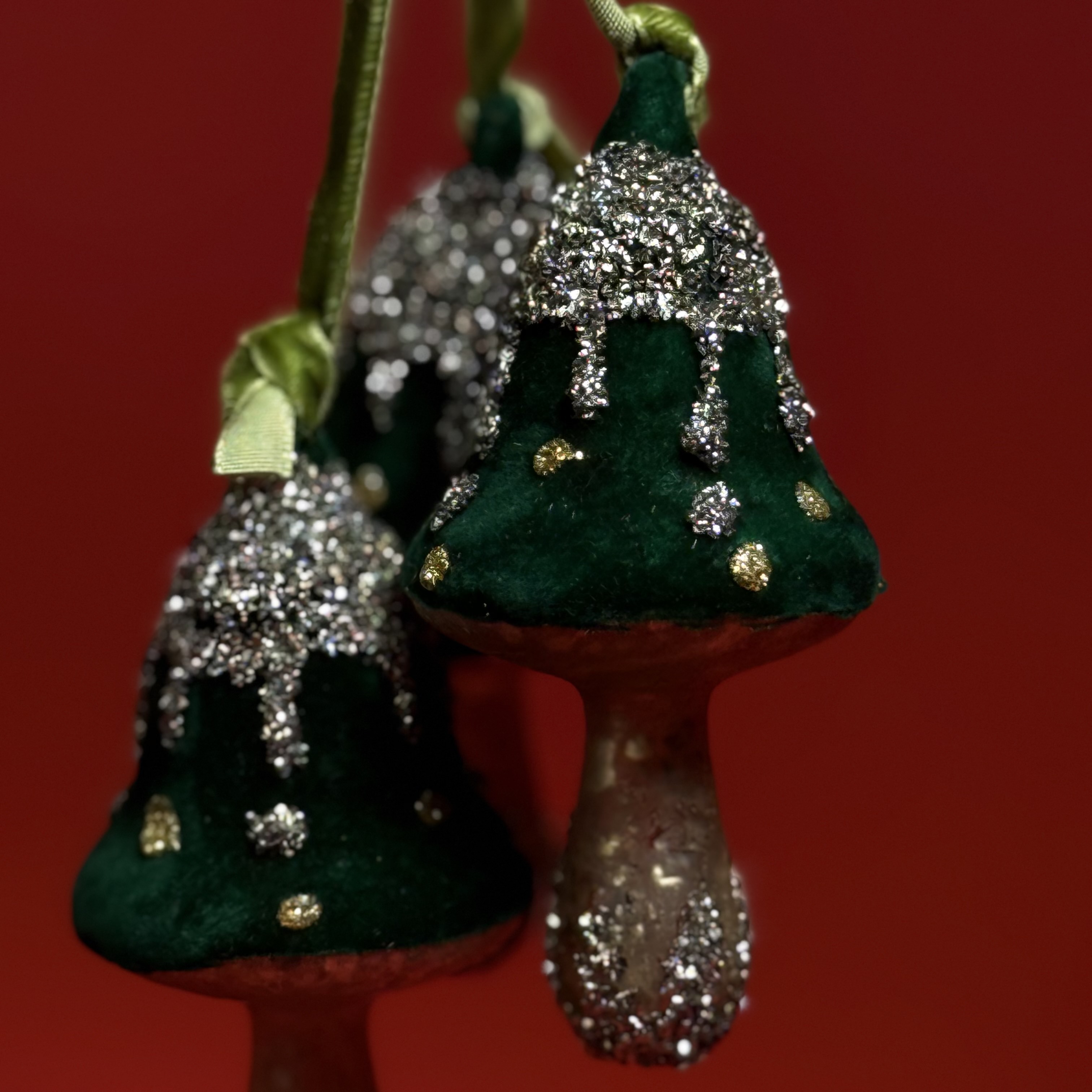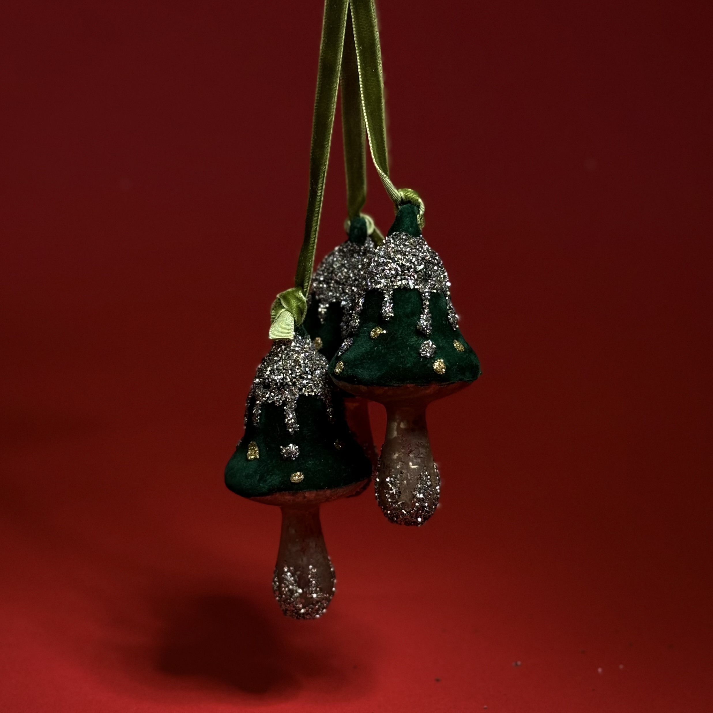 Набор украшений подвесных Гриб 3шт. (стекло), Н7,5х4,5см, зеленый