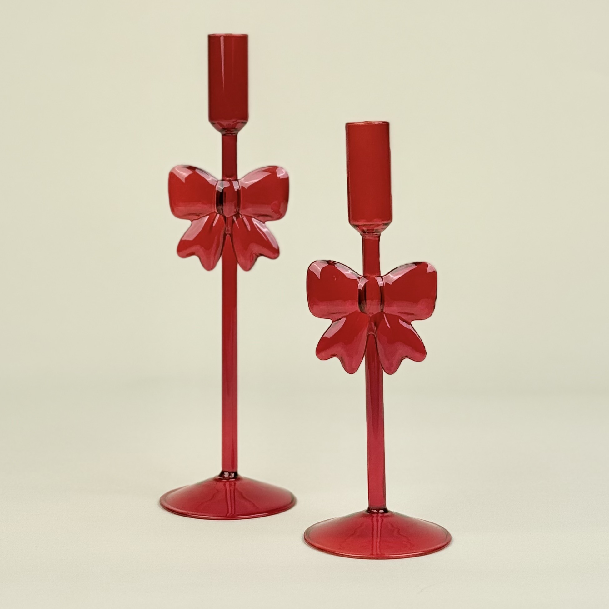 Подсвечник Бантики, красный, 8x8x27,5 см