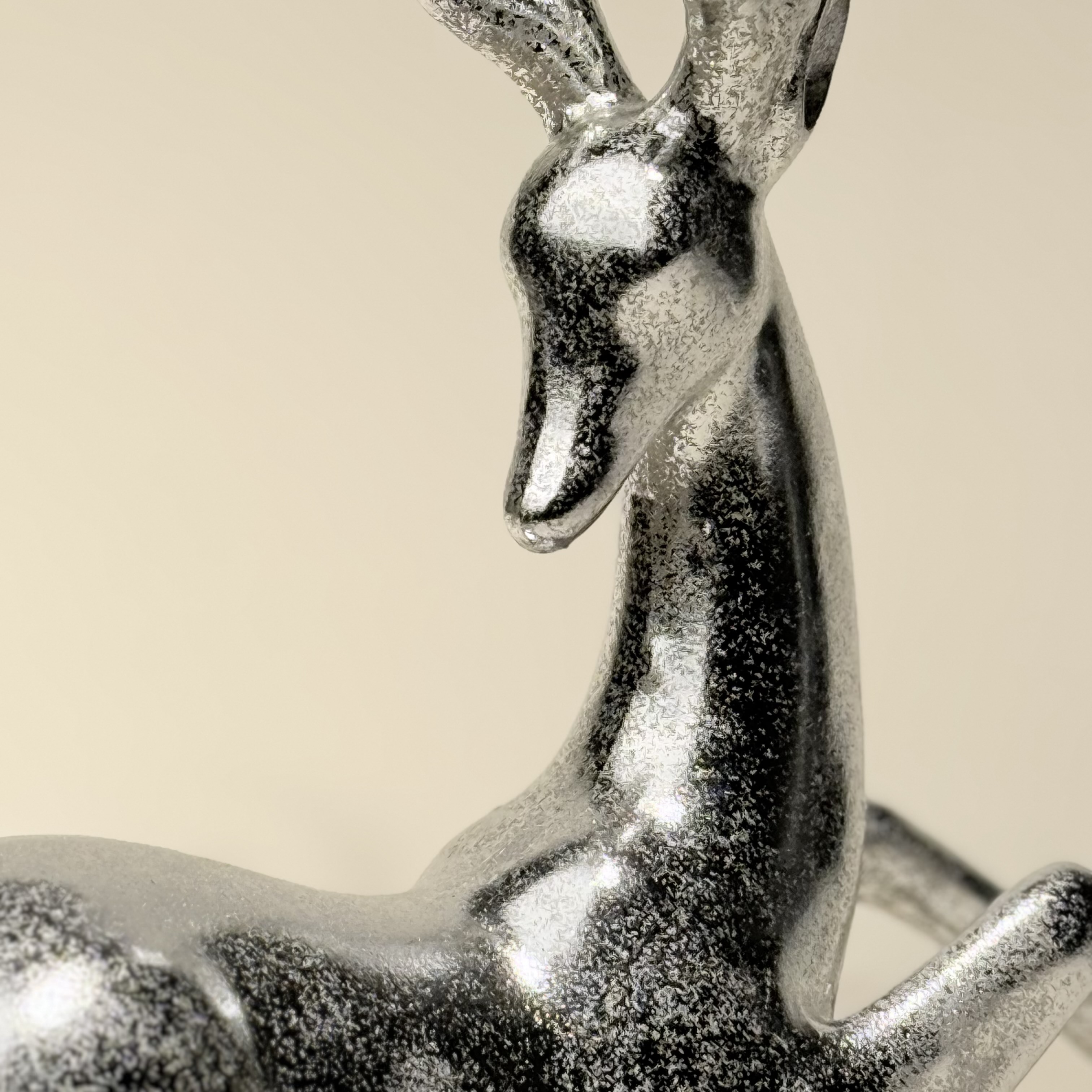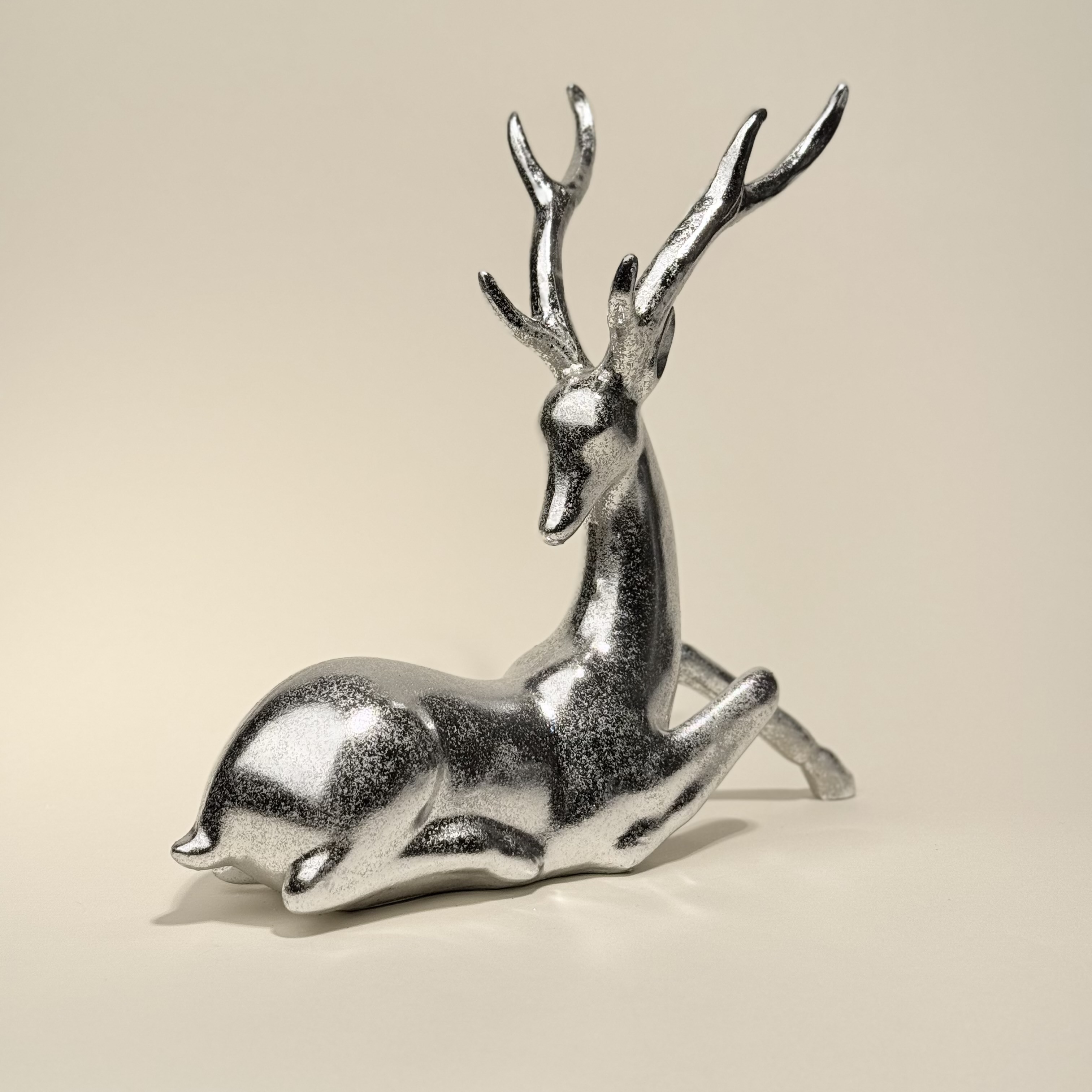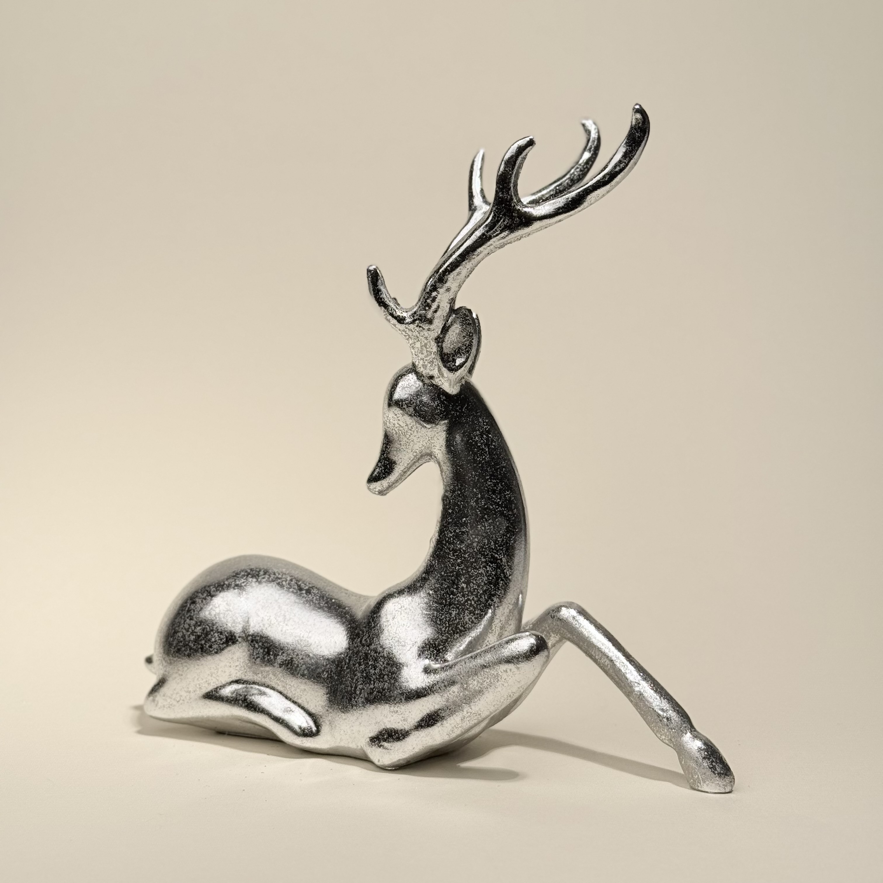 Сувенир Олень лежащий (полирезин), Н20,5х21х7,5см, серебряный