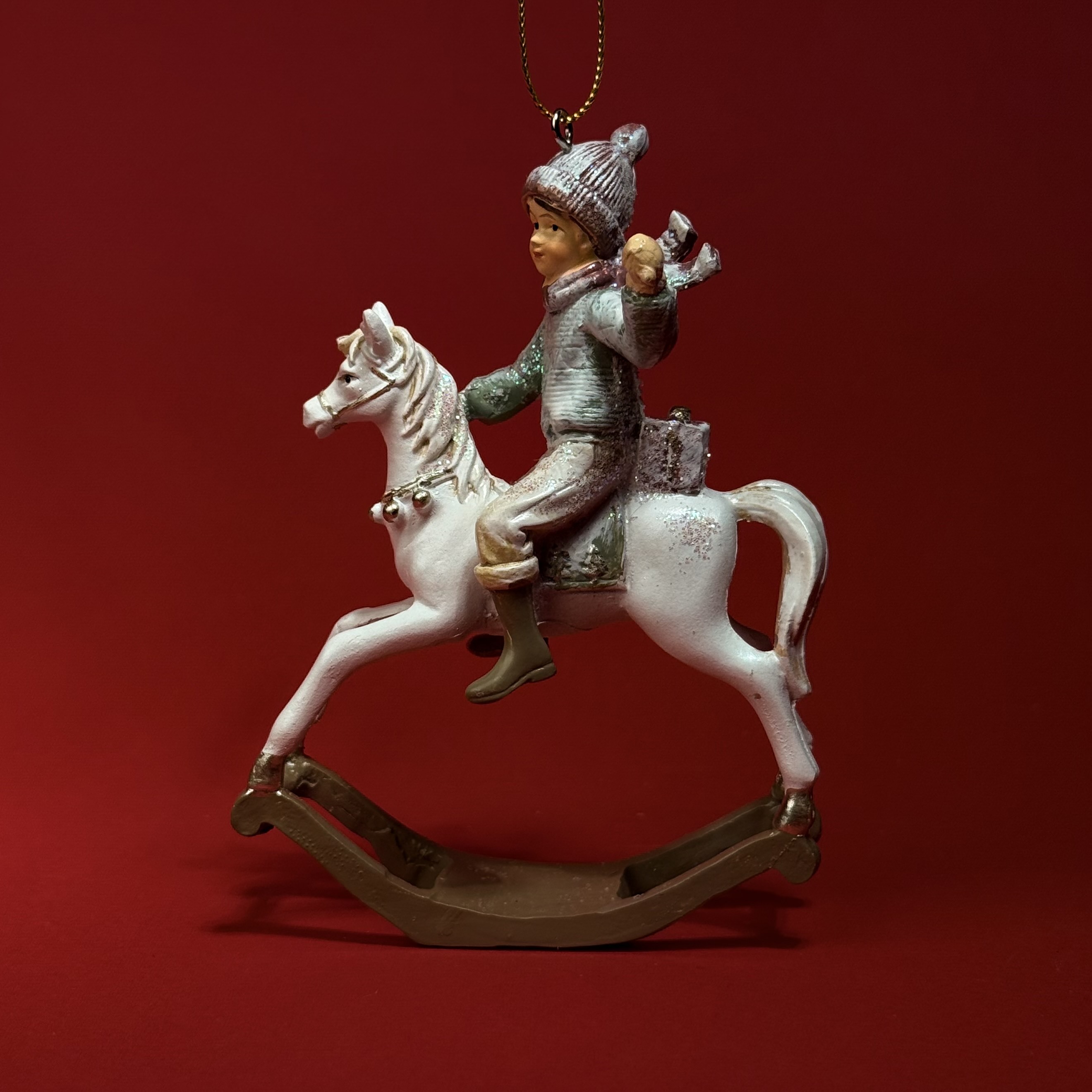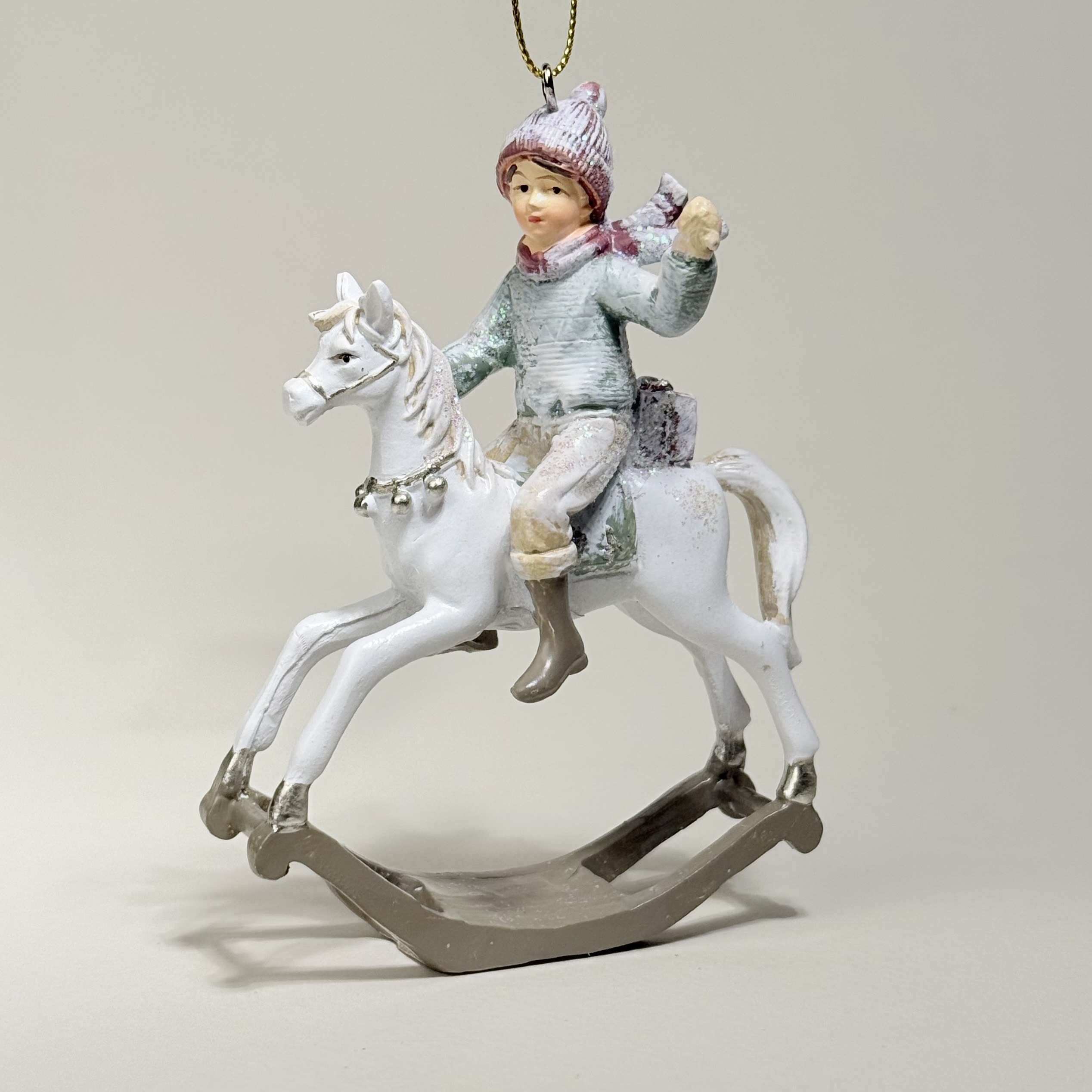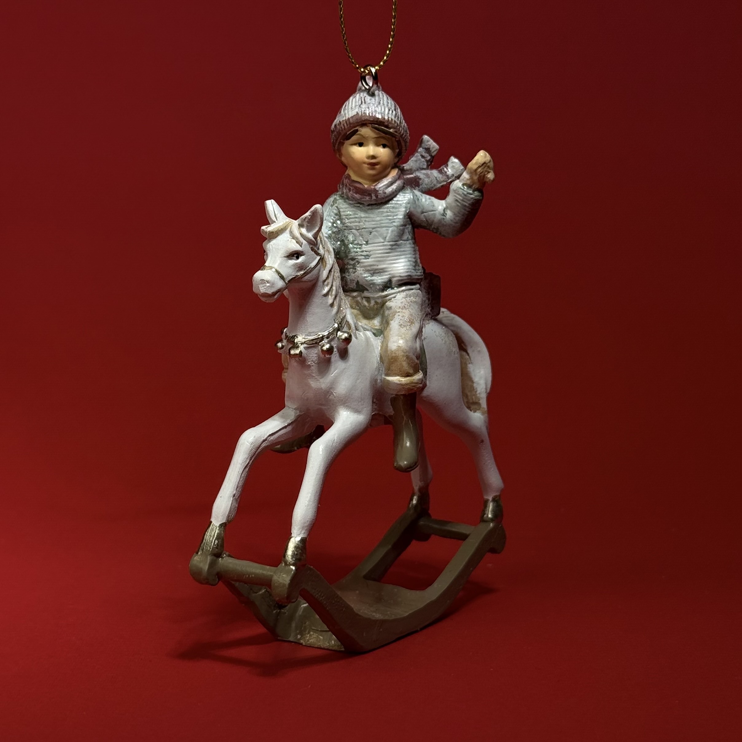 Украшение подвесное Мальчик на лошадке (полирезин), H12x9x4,5см, розовый