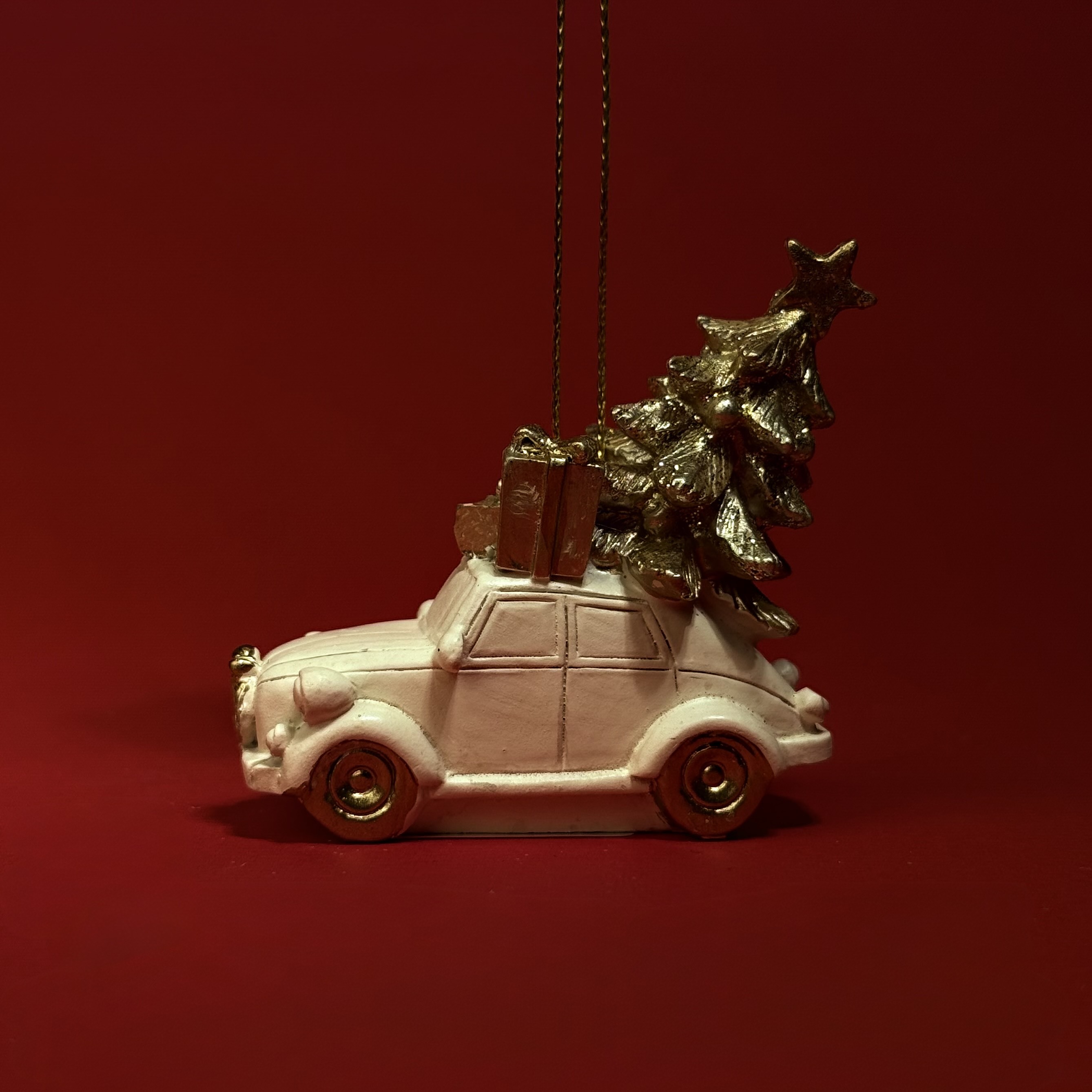 Украшение подвесное Машинка с подарками (полирезин), Н6,5х7х3см, белый