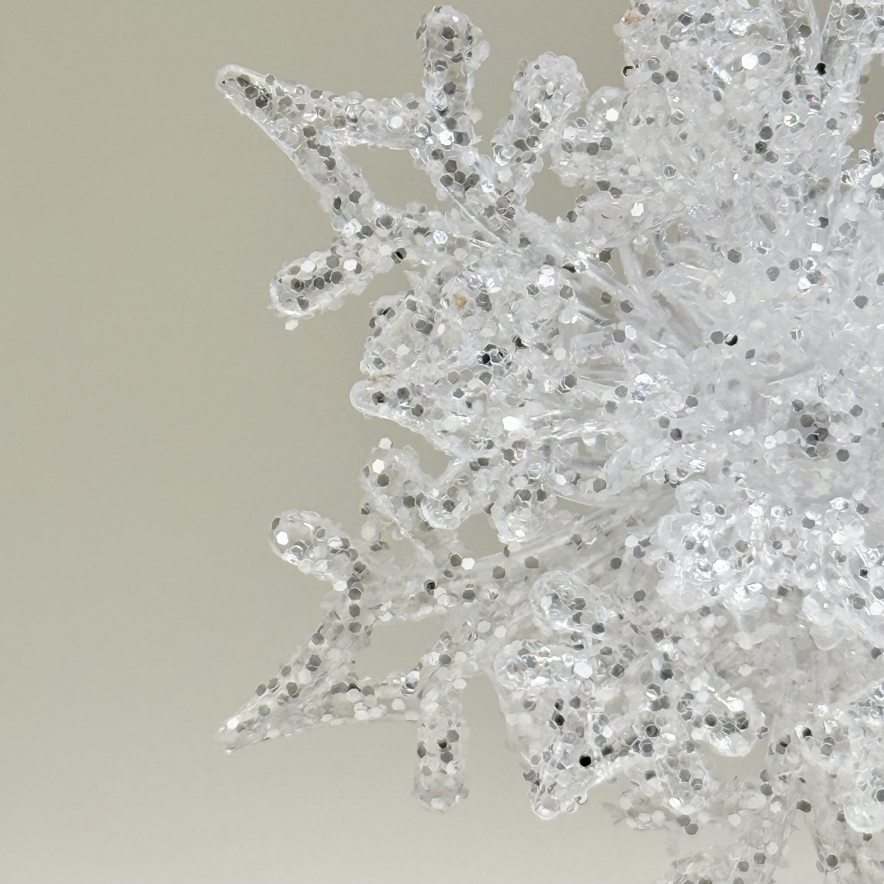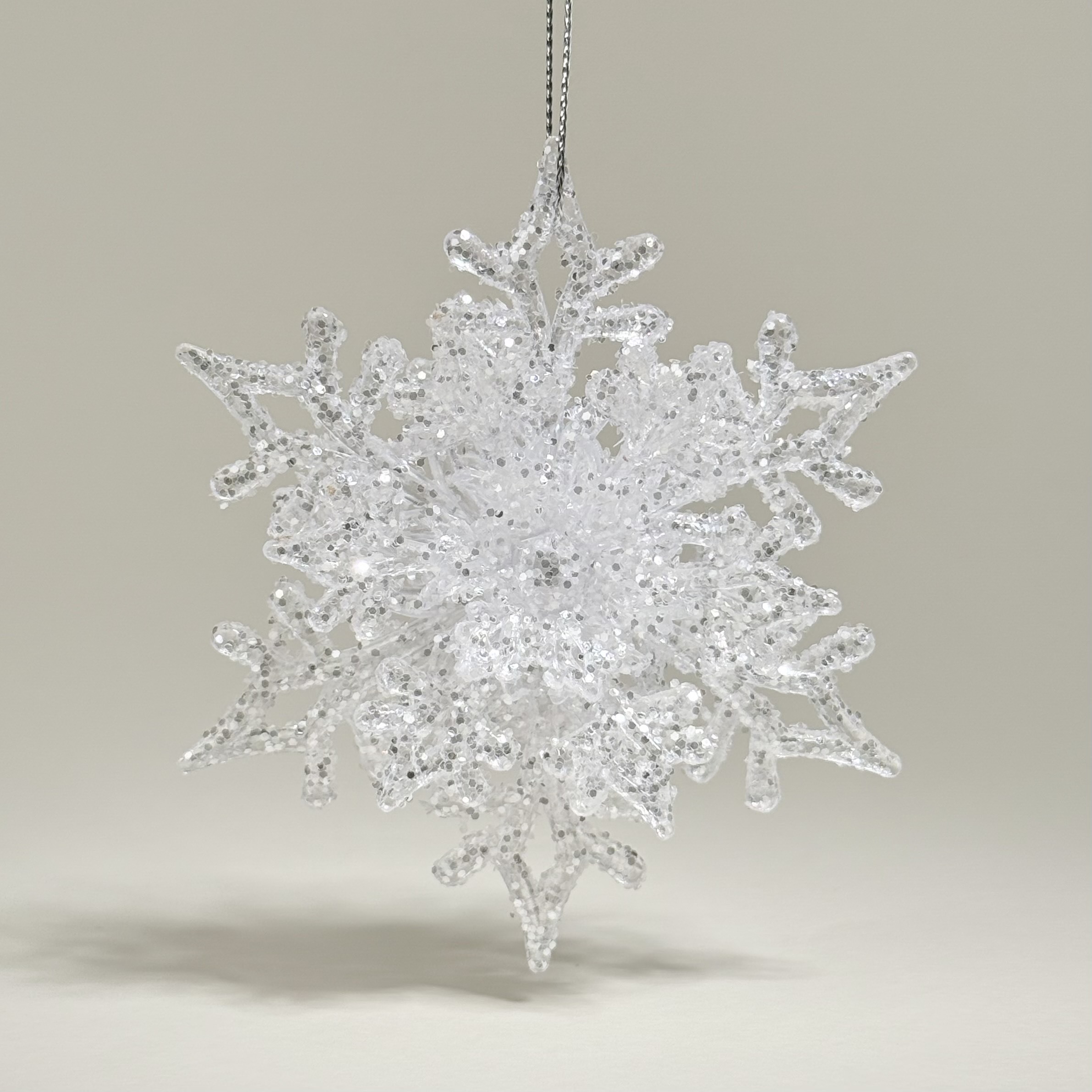 Украшение подвесное Снежинка с глиттером (пластик), 11см, белый