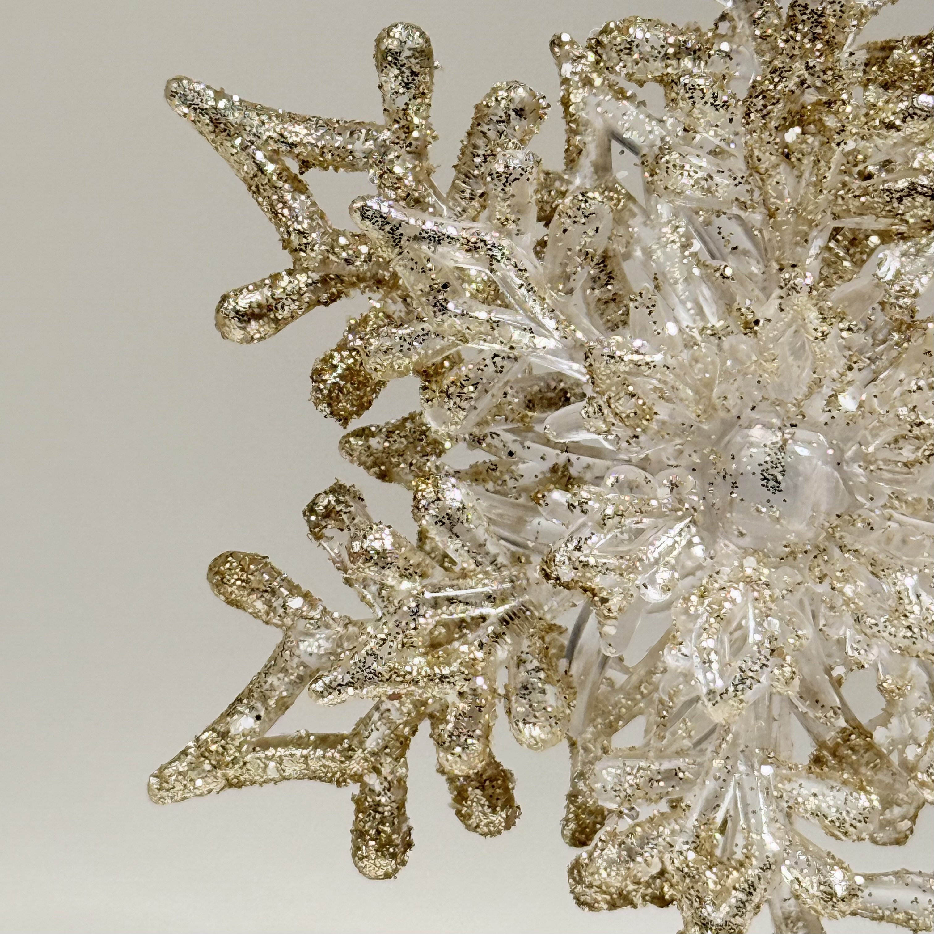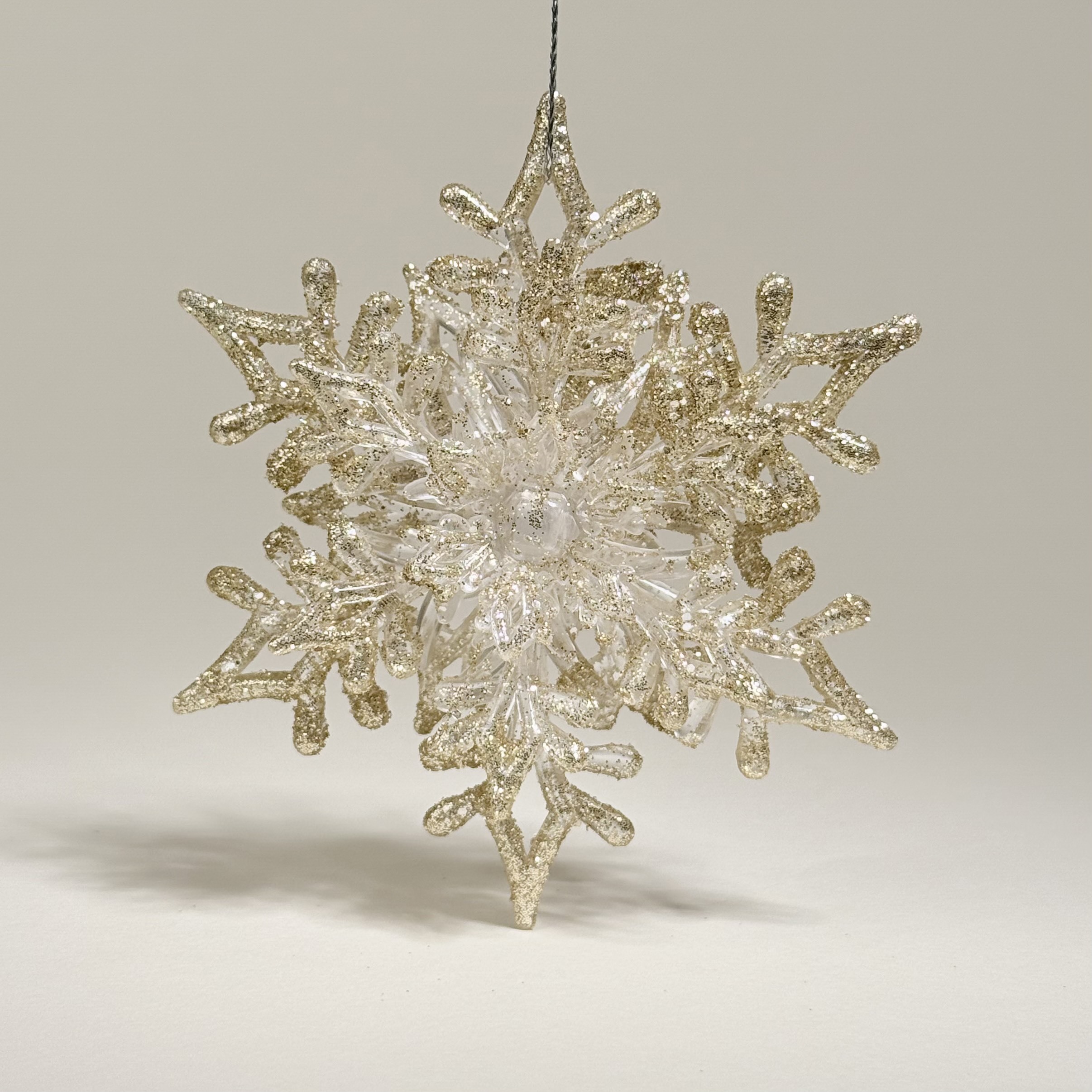 Украшение подвесное Снежинка с глиттером (пластик), 11см, шампань