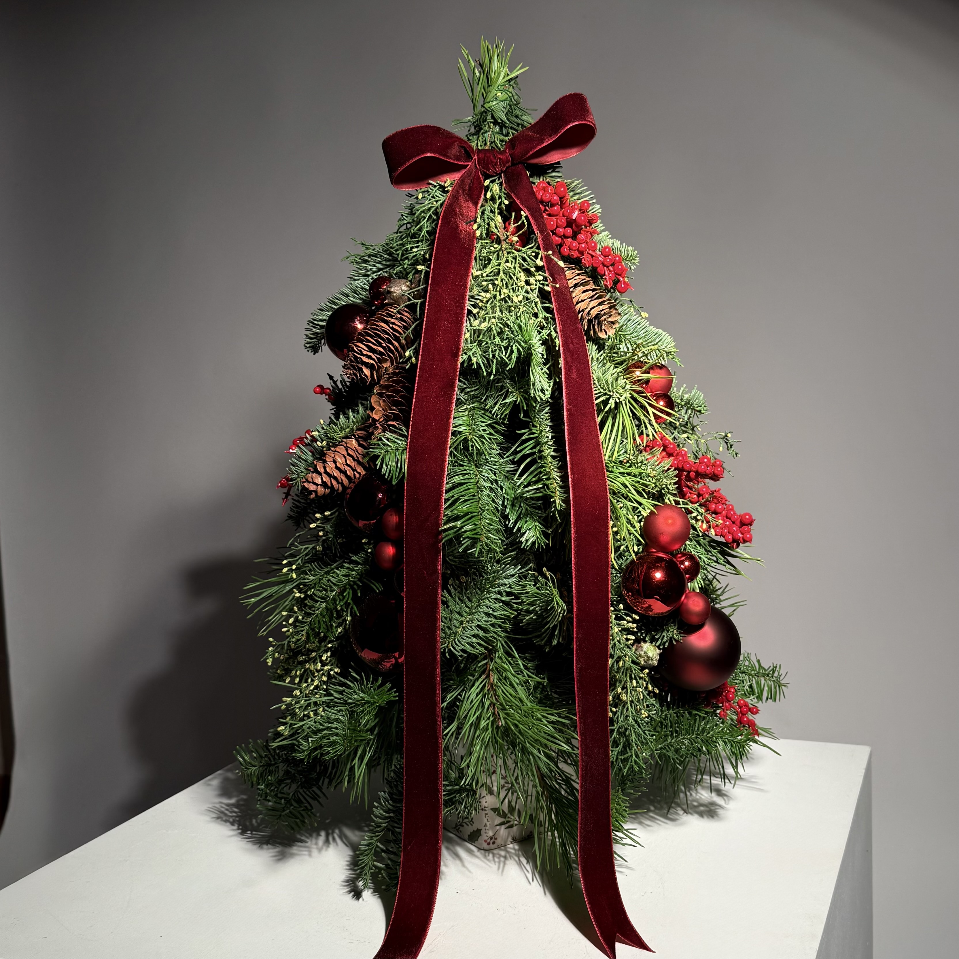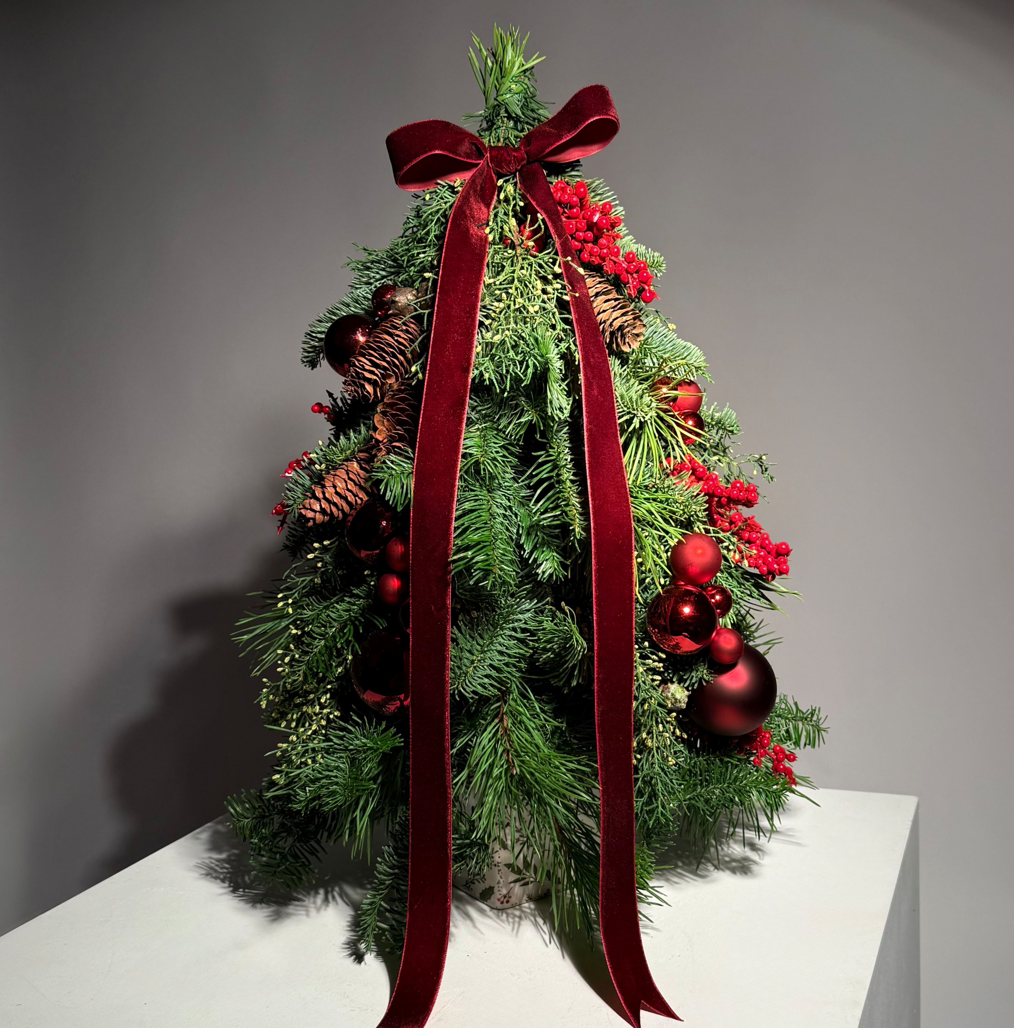 Как и живая хвоя, срезанная дольше всего сохраняется в прохладе. Размещайте композицию подальше от батарей и обогревателей.