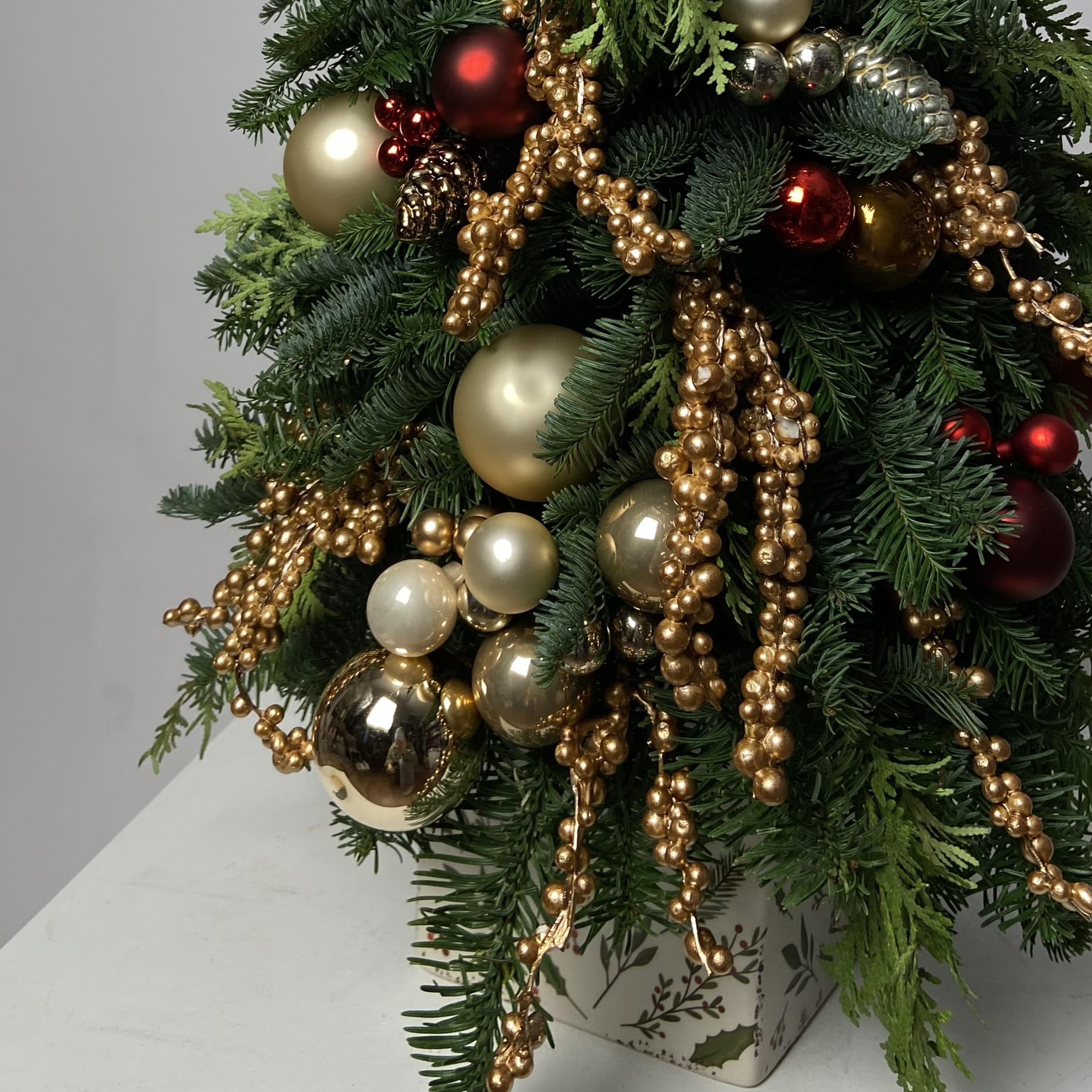 Как и живая хвоя, срезанная дольше всего сохраняется в прохладе. Размещайте композицию подальше от батарей и обогревателей.
