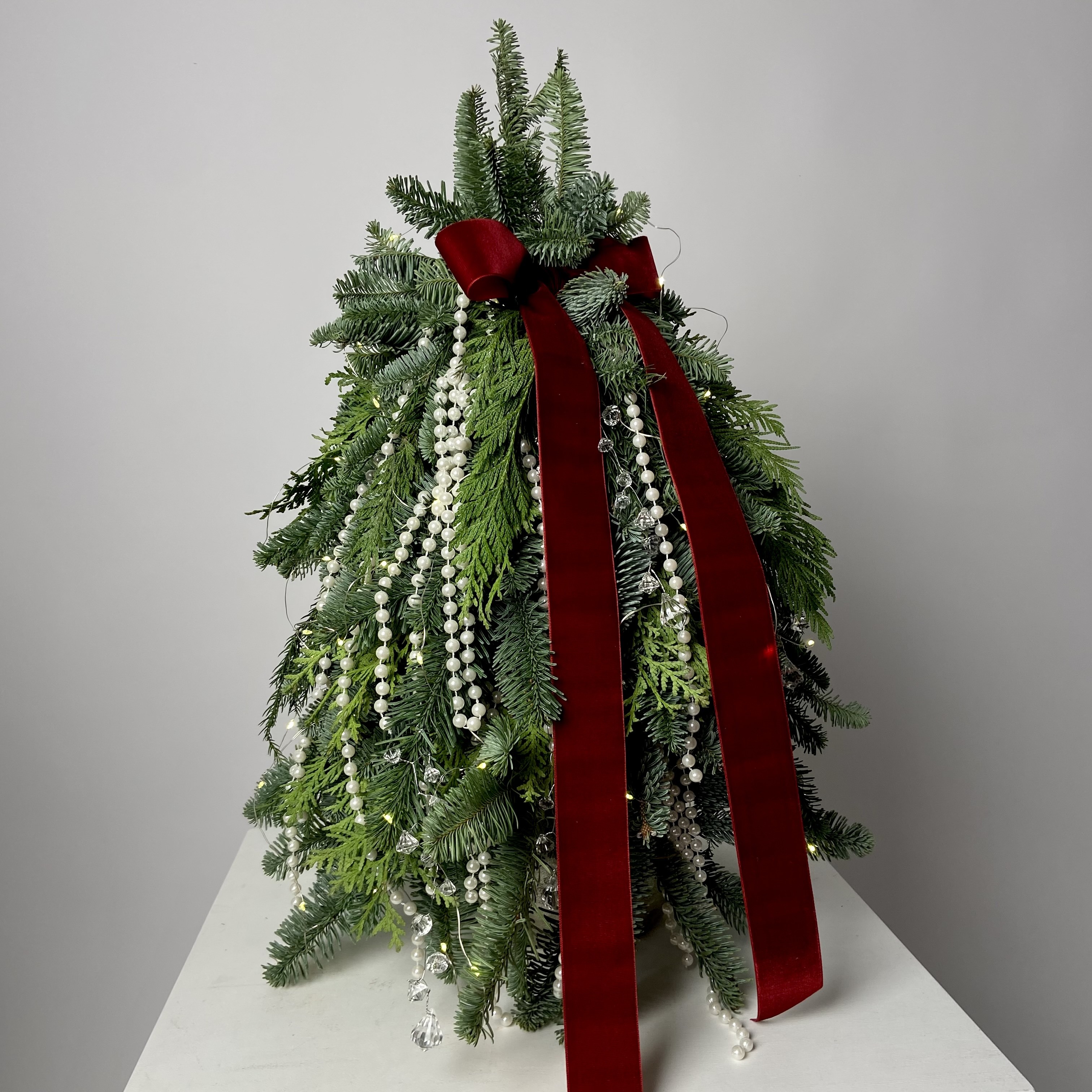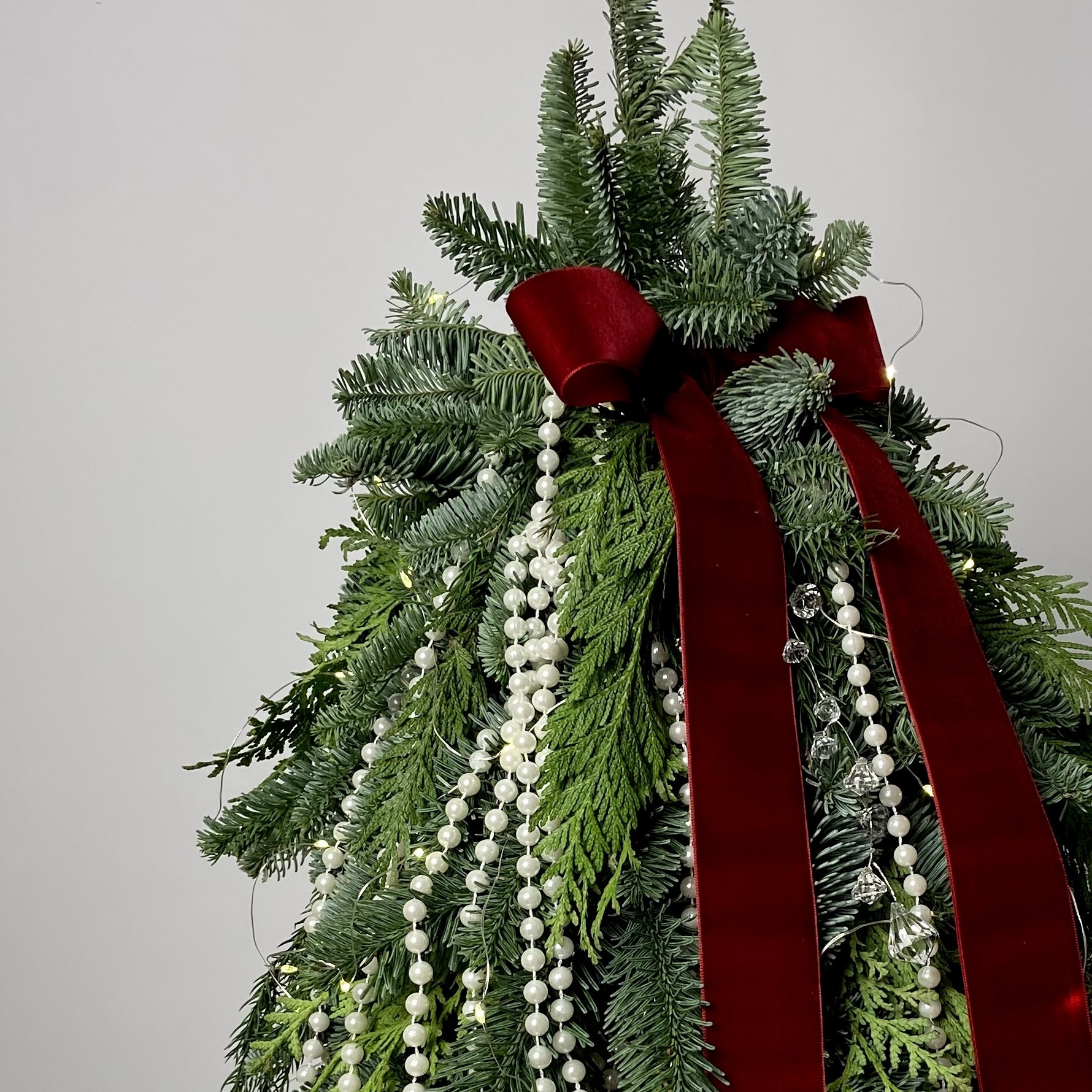 Как и живая хвоя, срезанная дольше всего сохраняется в прохладе. Размещайте композицию подальше от батарей и обогревателей.